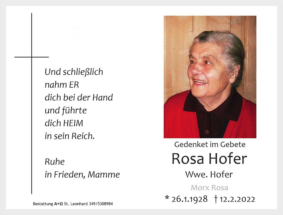 die nach langer Krankheit im 95. Lebensjahr friedlich im Herrn entschlafen ist.Den