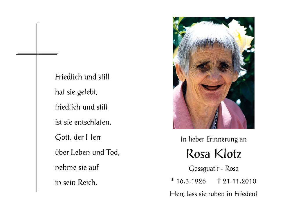 Ein besonderer Dank gilt den Ärzten und dem Pflegepersonal des Altersheimes von Latsch für die liebevolle Betreuung unserer Verstorbenen.