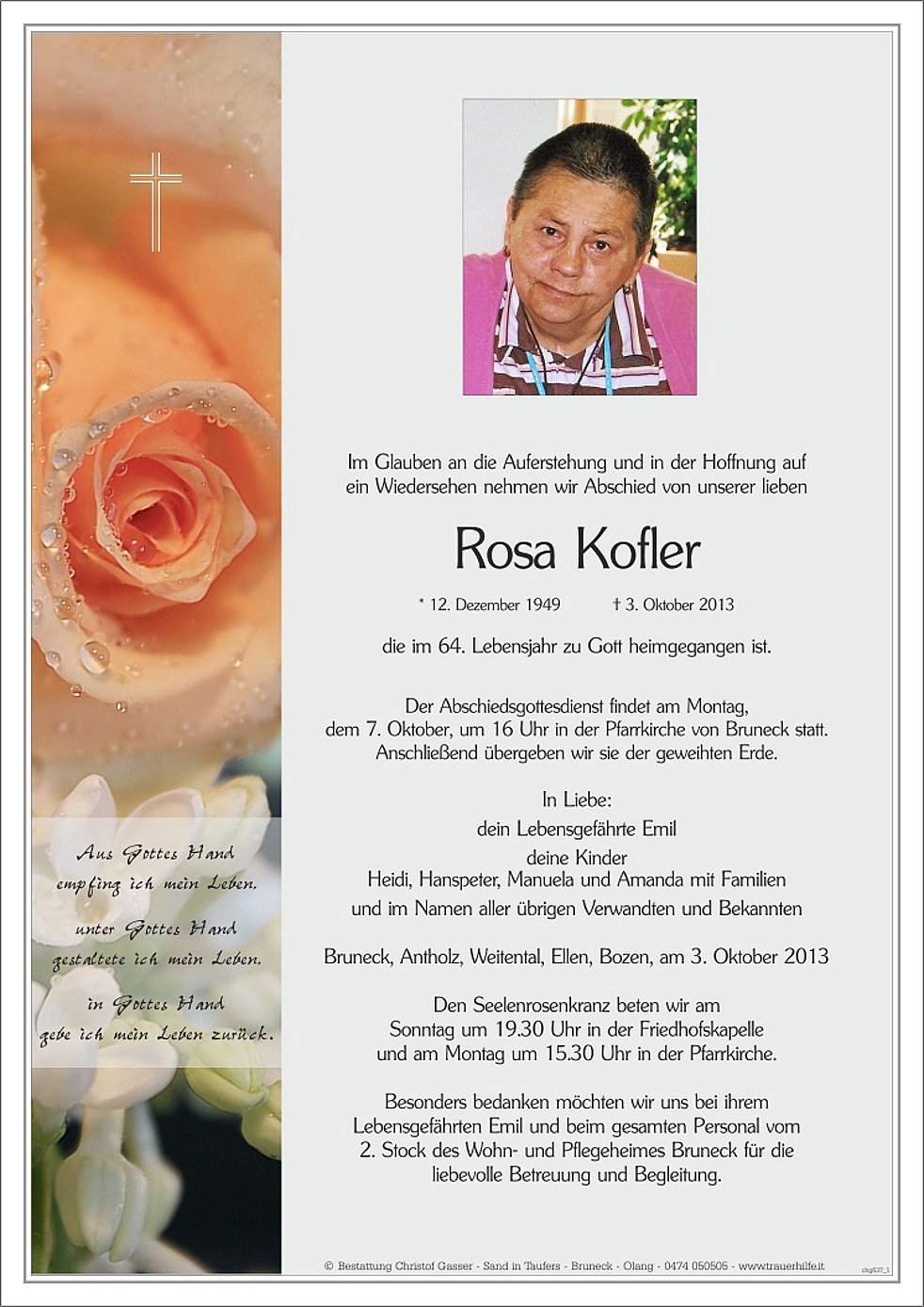 die im 64. Lebensjahr zu Gott heimgegangen ist.