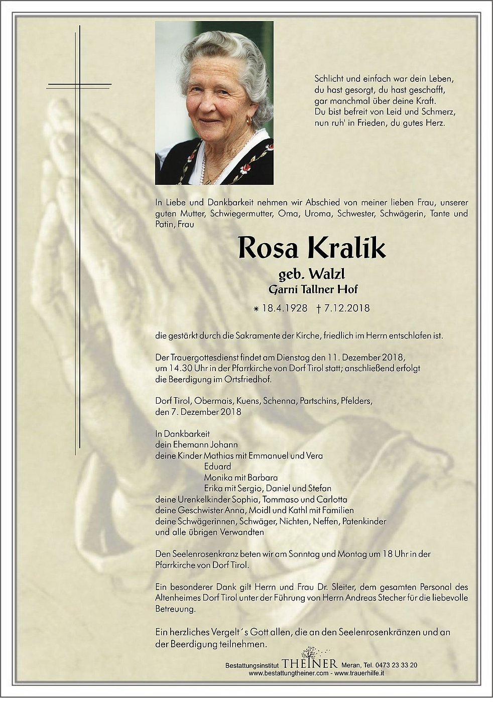 Der Trauergottesdienst findet am Dienstag den 11. Dezember 2018, um 14.30 Uhr in der Pfarrkirche von Dorf Tirol statt; anschließend erfolgt die Beerdigung im Ortsfriedhof.