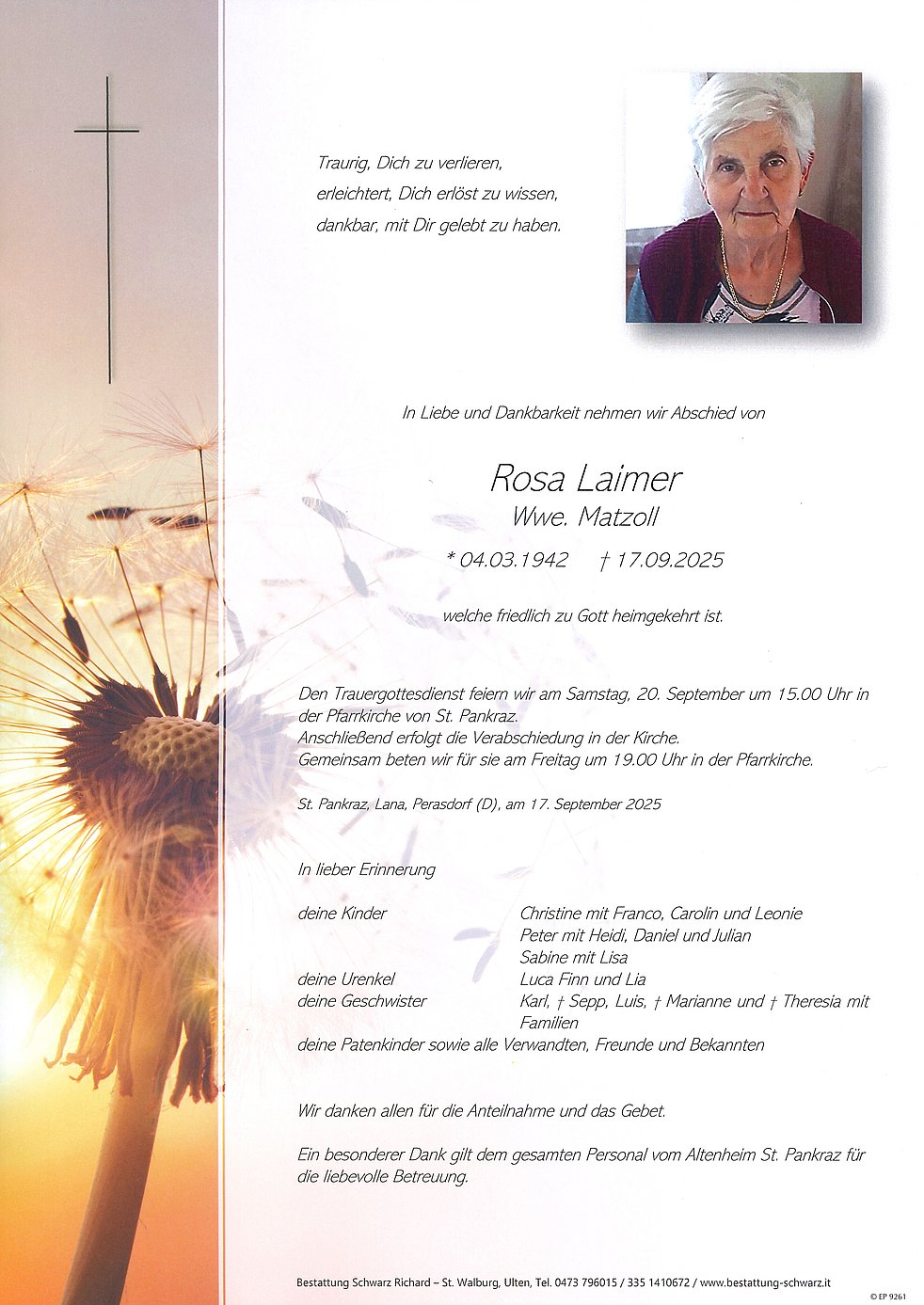 Den Trauergottesdienst feiern wir am Samstag, 20. September um 15.00 Uhr in der Pfarrkirche von St. Pankraz.