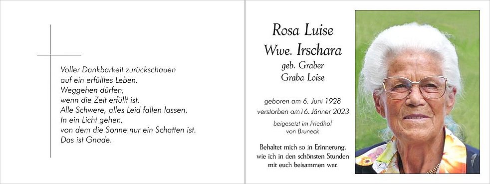 Rosa Luise Wwe. Irschara geb. Graber