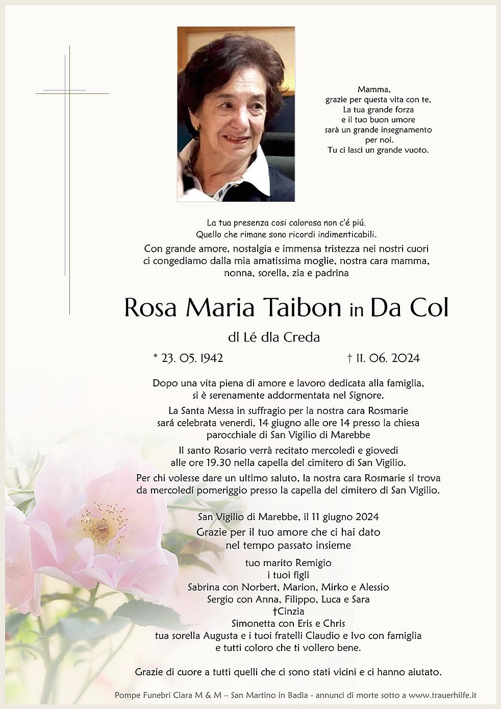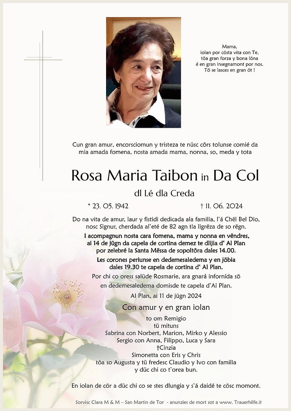 Palsa tla pêsc Rosmarie 💐 sontides condolianzes a os düc