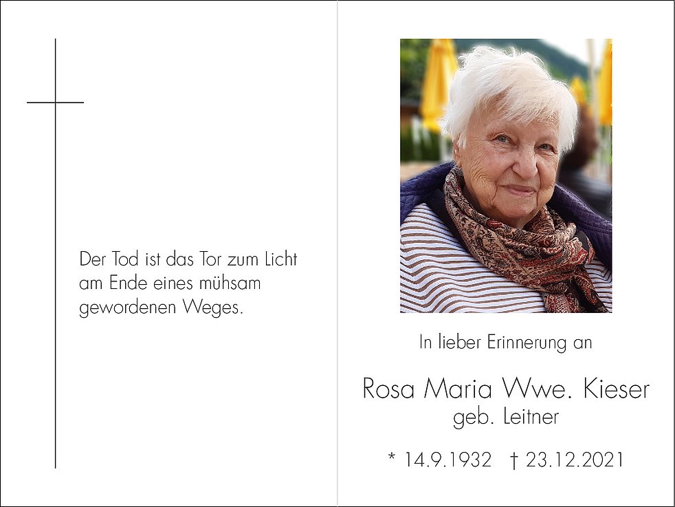 Traurigen Herzens geben wir bekannt, dass unsere liebe Mutter, Schwiegermutter und Oma, Frau