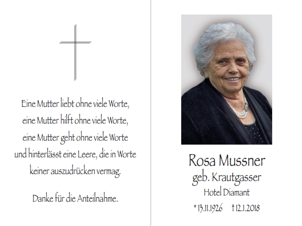 Dankbar, für die Zeit, die wir gemeinsam erleben durften, nehmen wir traurigen Herzens Abschied von unserer geliebten Mutter, Großmutter und Urgroßmutter, Frau