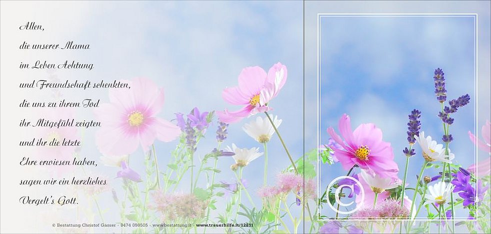 Vergelt‘s Gott allen, die an den Seelenrosenkränzen und an der Beerdigung von unserer lieben Mama teilnehmen und sie in guter Erinnerung behalten.