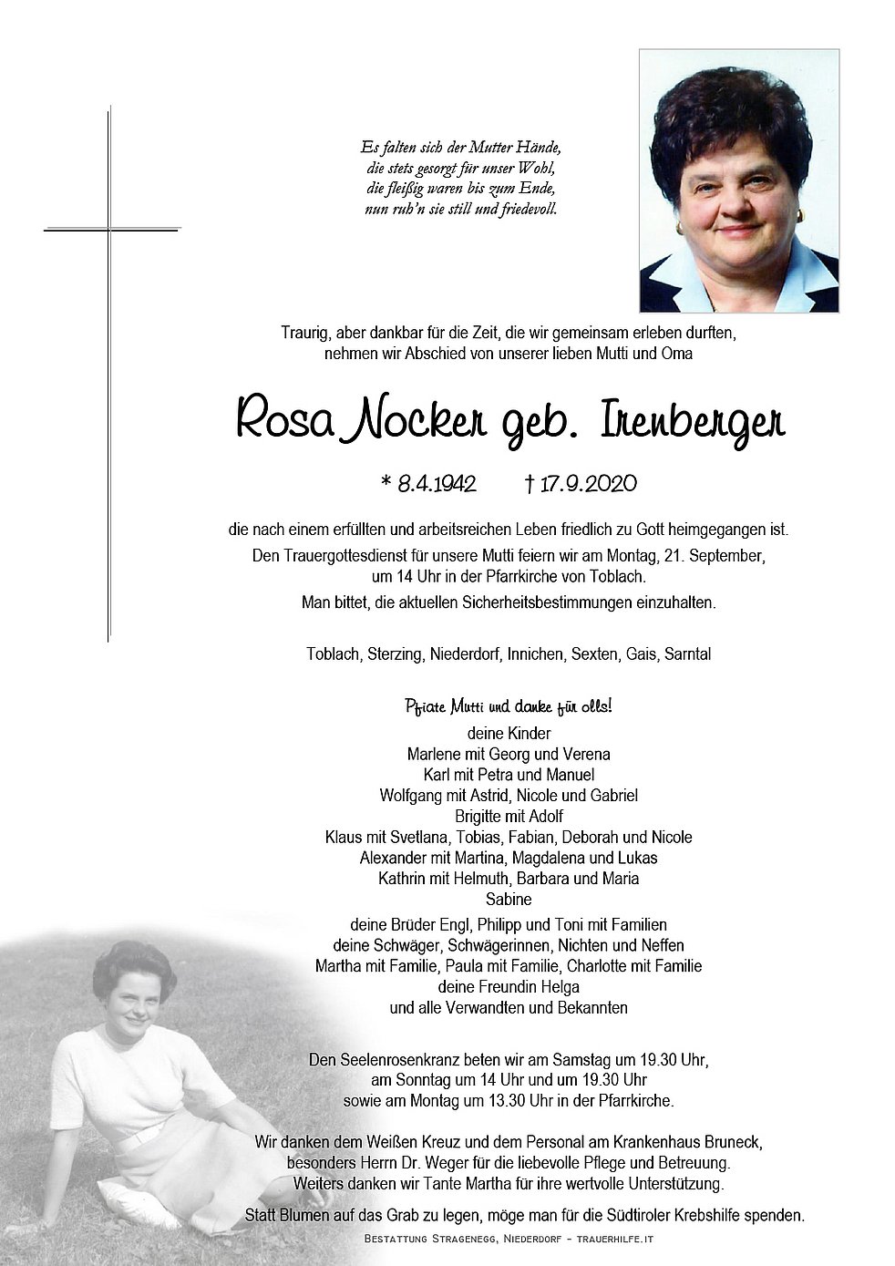 Den Trauergottesdienst für unsere Mutti feiern wir am Montag, 21. September, um 14 Uhr in der Pfarrkirche von Toblach.