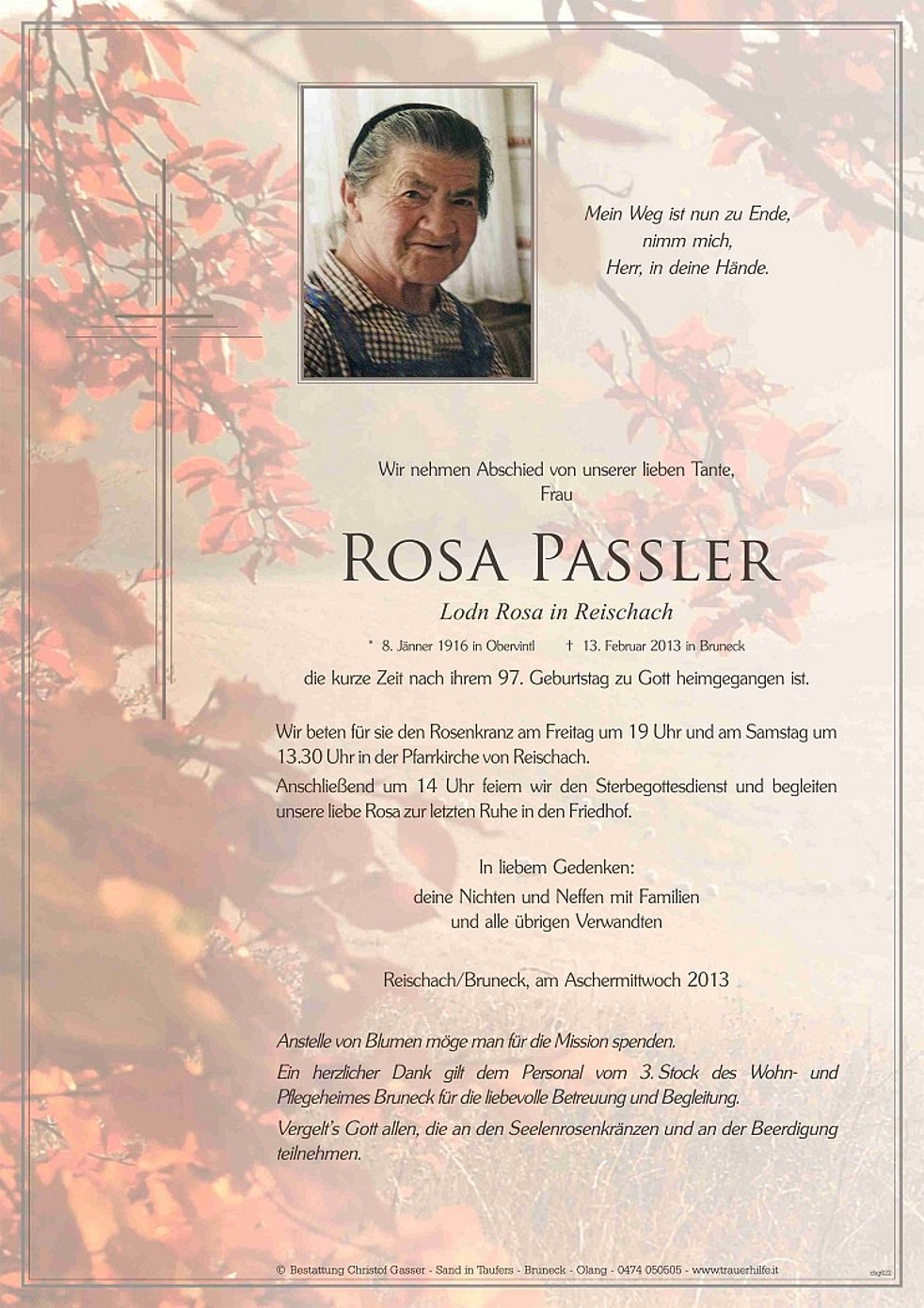 * 8. Jänner 1916 in Obervintl † 13. Februar 2013 in Bruneck