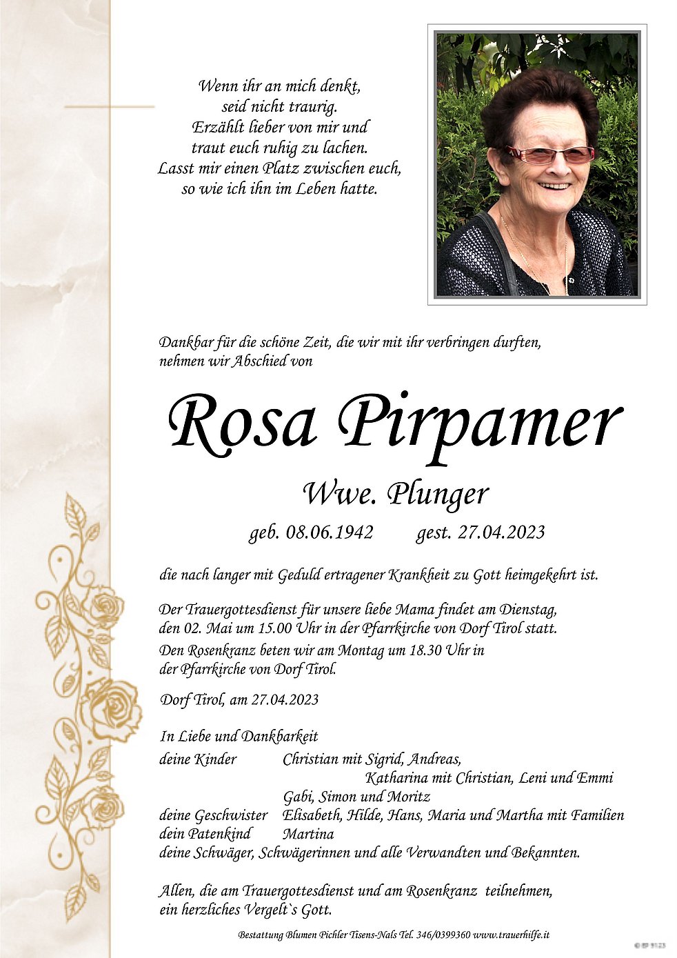 Trauerfeier: 02.05. - 15:00 Uhr Pfarrkirche Dorf Tirol