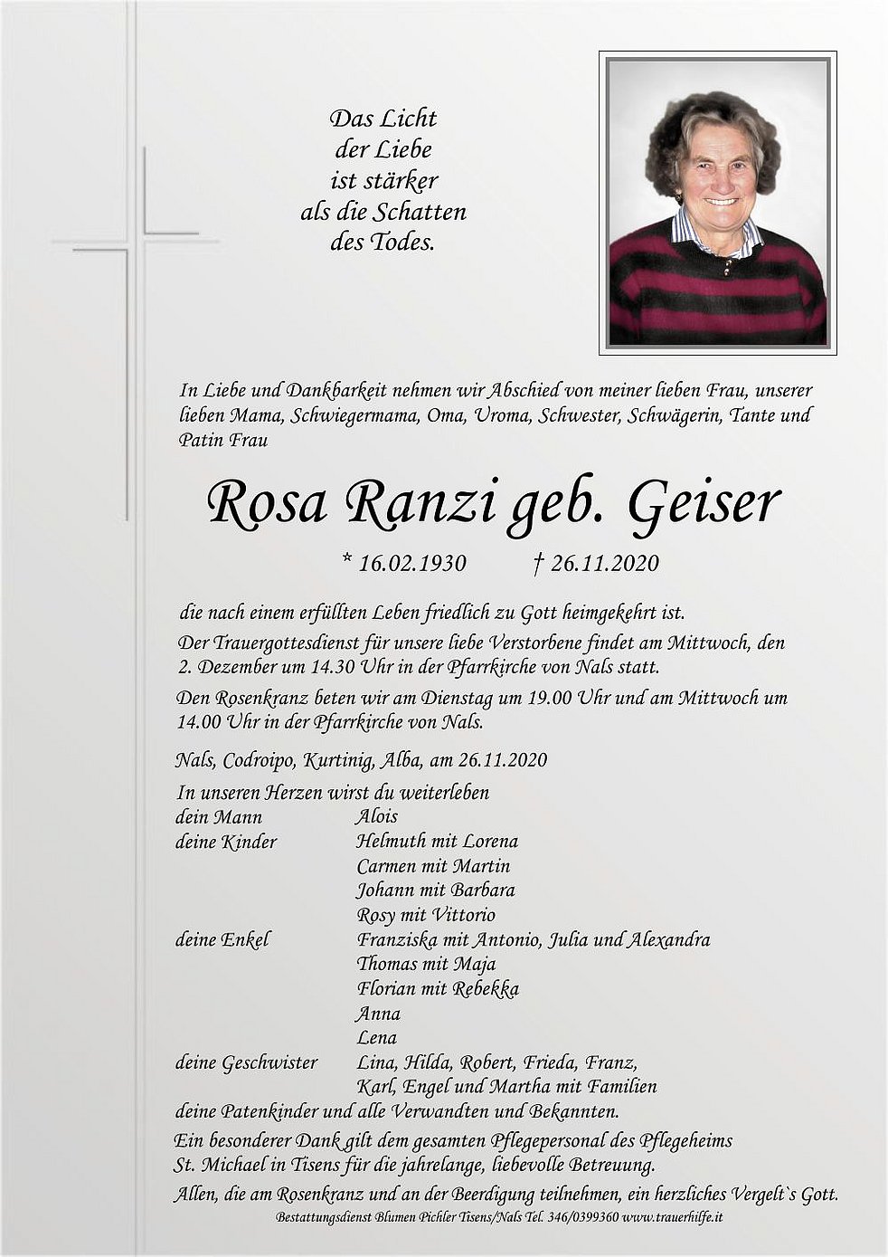 Der Trauergottesdienst für unsere liebe Verstorbene findet am Mittwoch, den