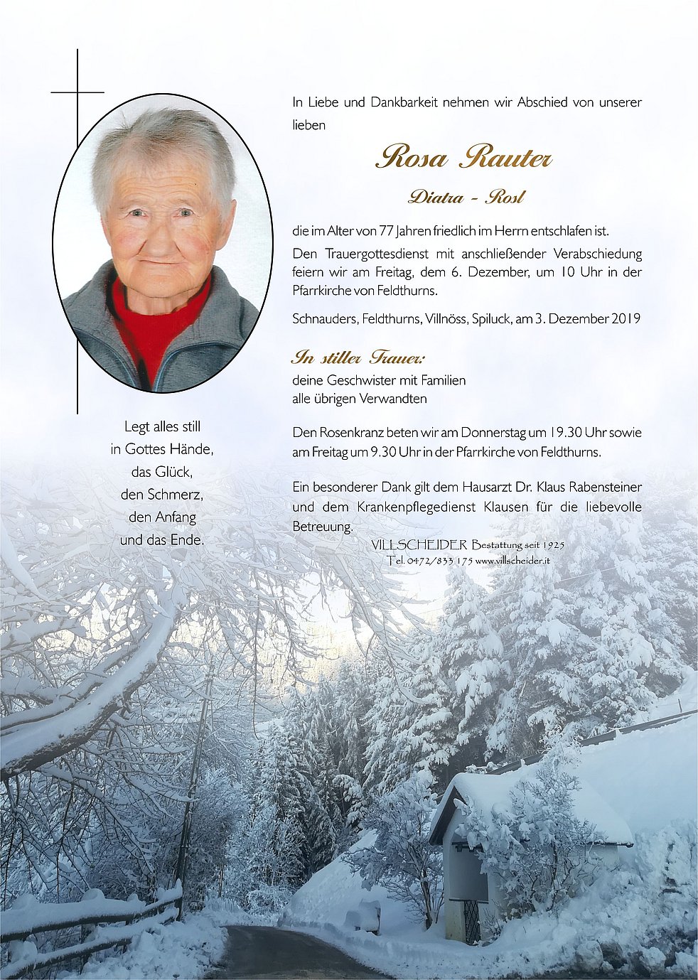 Trauerfeier: 06.12. - 10:00 Uhr Feldthurns