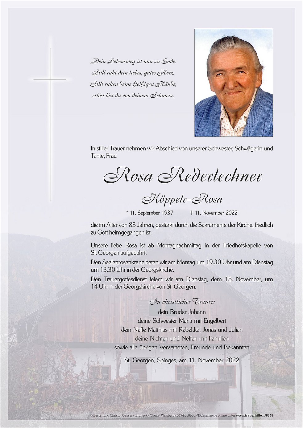Als Ältestes von drei Kindern kam Rosa beim Köppelehof in St. Georgen zur Welt und wuchs dort mit ihren beiden Geschwistern Hansl und Maria auf.