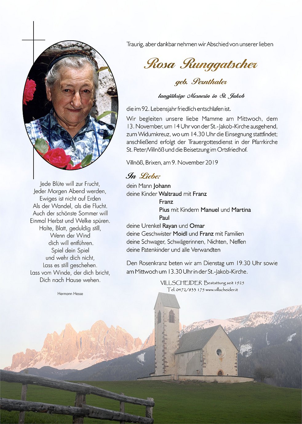 Begräbnisgottesdienst: 13.11. - 14:30 Uhr St. Peter/Villnöß