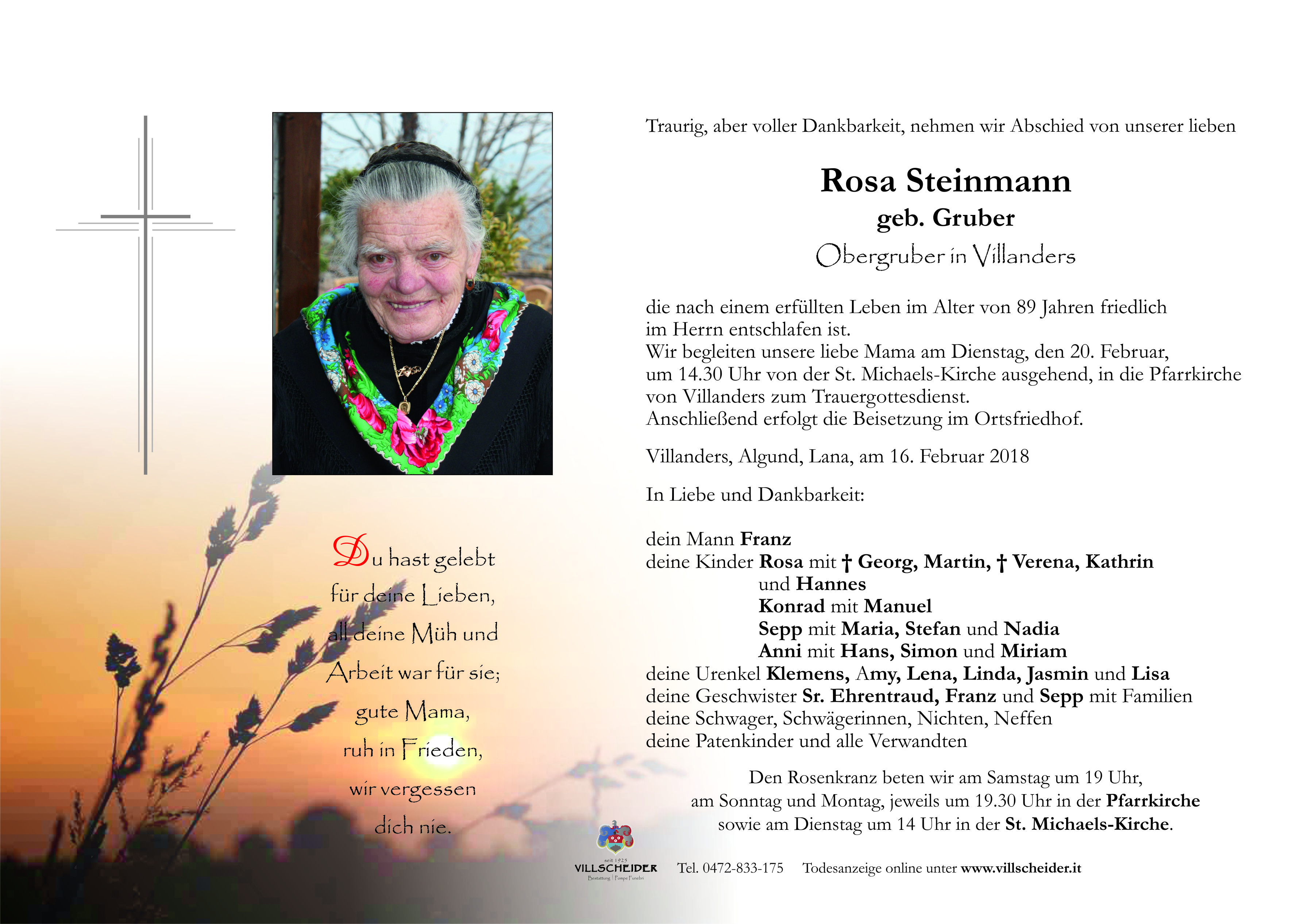 von Villanders zum Trauergottesdienst.