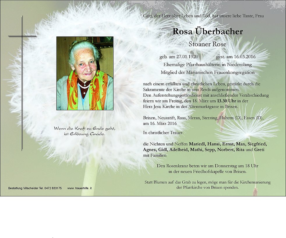Statt Blumen auf das Grab zu legen, möge man für die Kirchensanierung der Pfarrkirche von Brixen spenden.