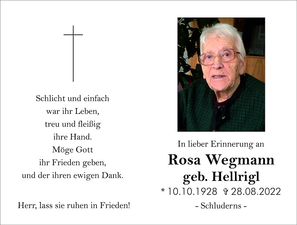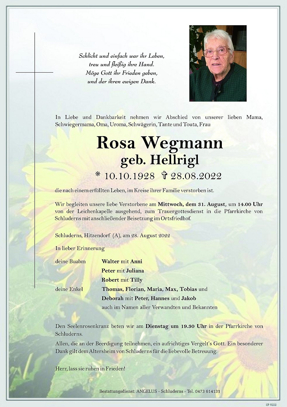 Begräbnisgottesdienst: 31.08. - 14:00 Uhr Pfarrkirche von Schluderns