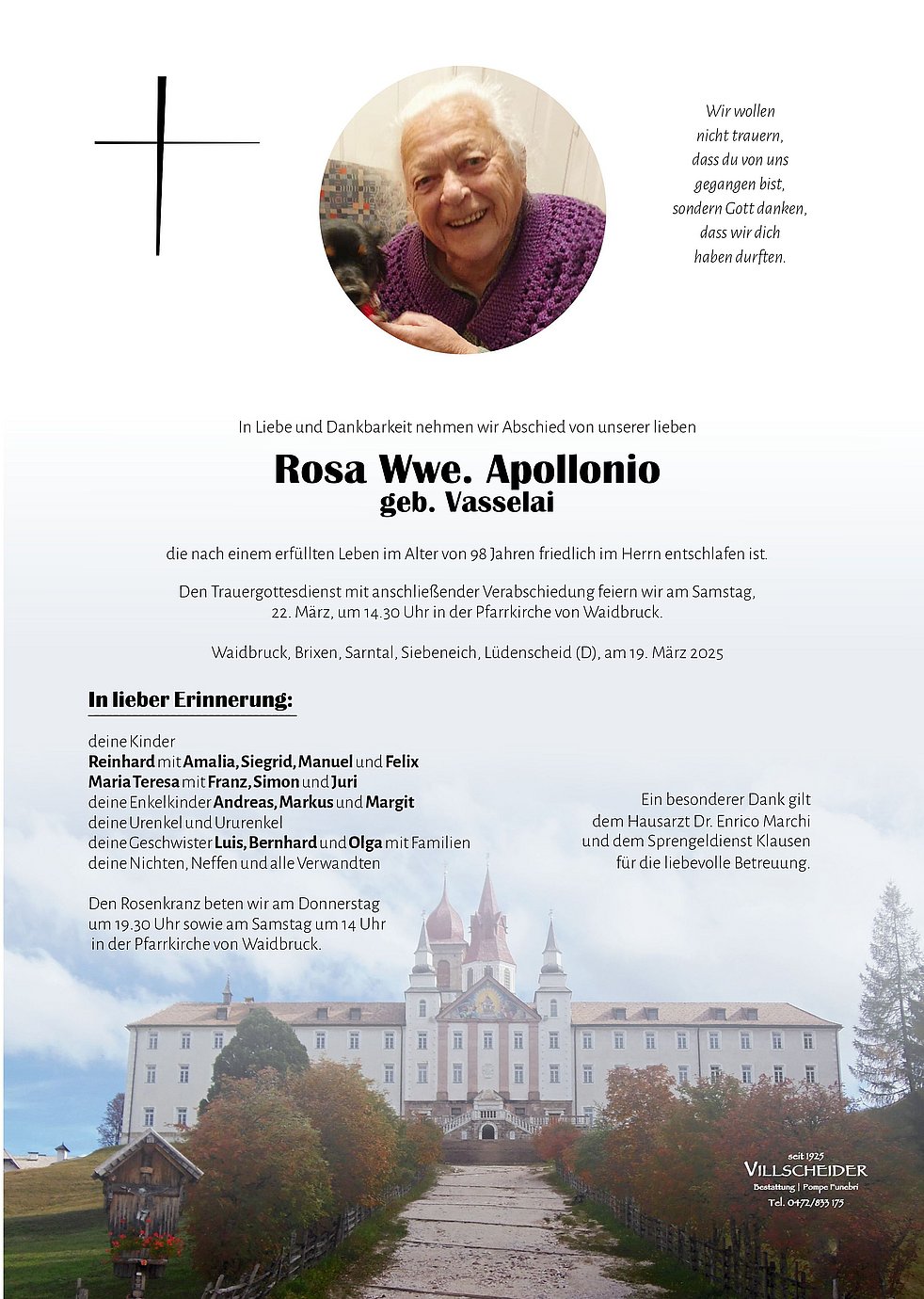 Trauerfeier: 22.03. - 14:30 Uhr Waidbruck