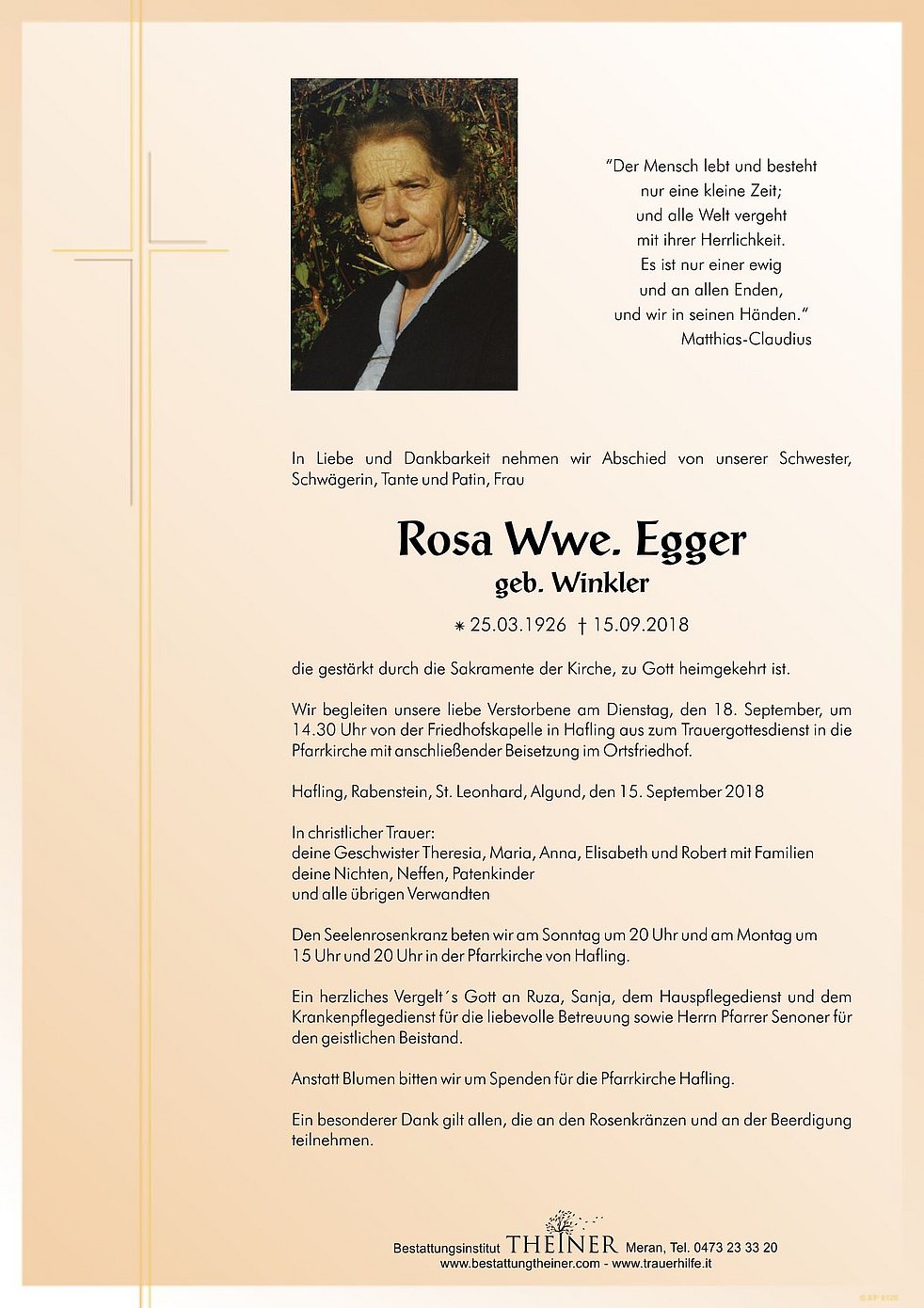 Wir begleiten unsere liebe Verstorbene am Dienstag, den 18. September, um 14.30 Uhr von der Friedhofskapelle in Hafling aus zum Trauergottesdienst in die Pfarrkirche mit anschließender Beisetzung im Ortsfriedhof.