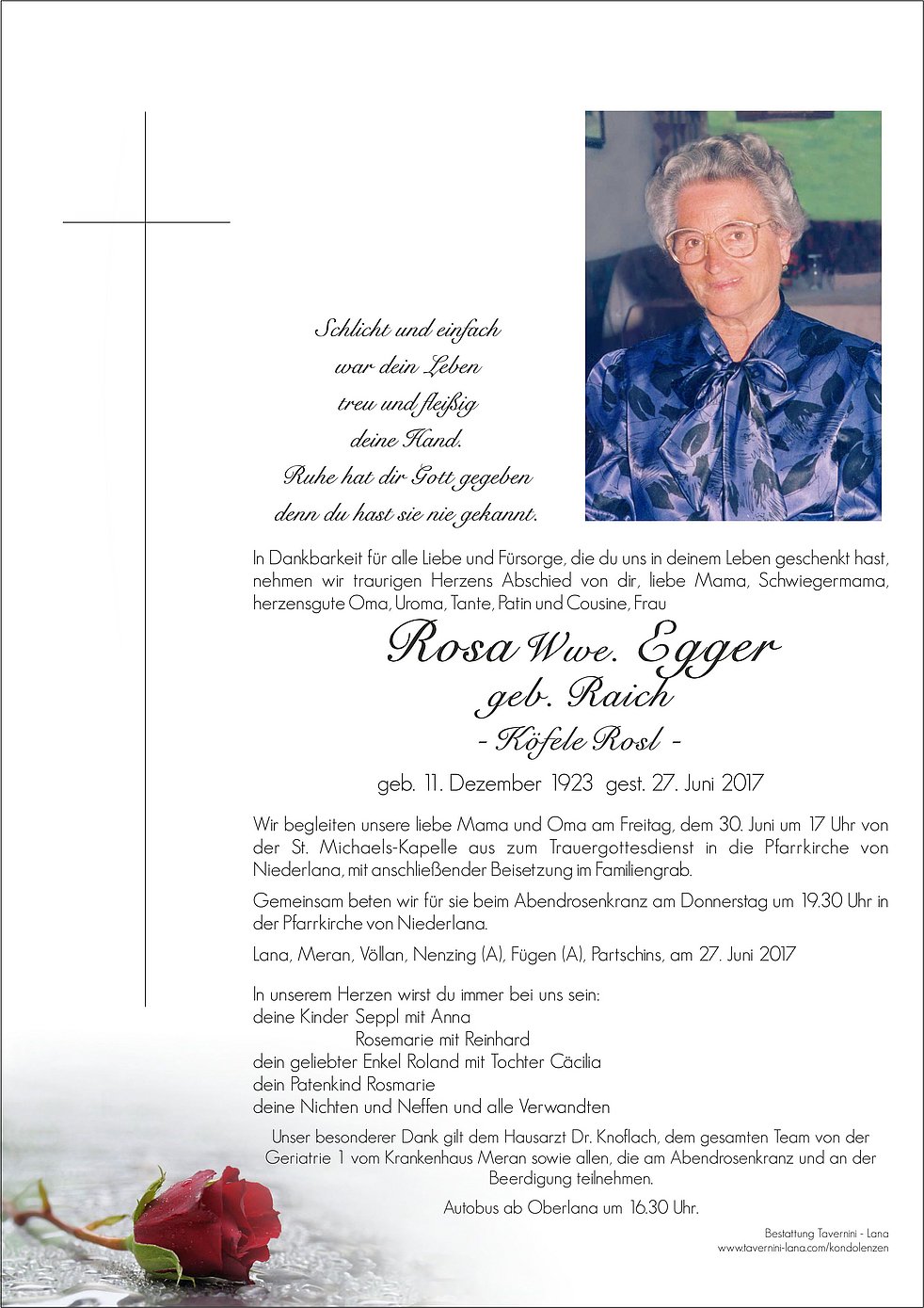 Begräbnisgottesdienst: 30.06. - 17:00 Uhr Pfarrkirche von Niederlana