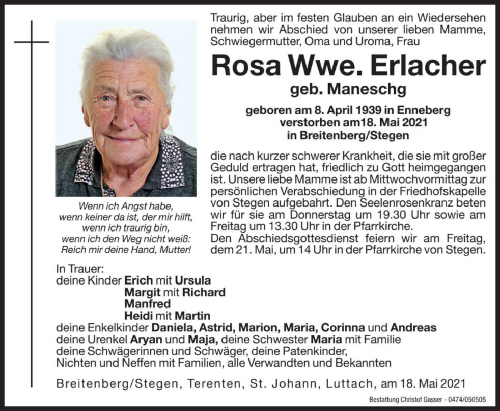 verstorben am18. Mai 2021 in Breitenberg/Stegen