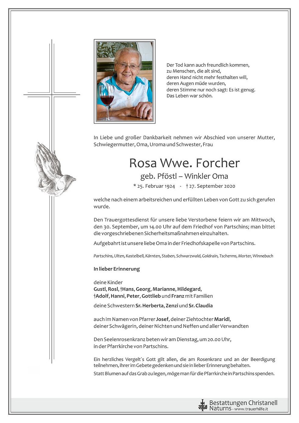 Den Trauergottesdienst für unsere liebe Verstorbene feiern wir am Mittwoch, den 30. September, um 14.00 Uhr auf dem Friedhof von Partschins; man bittet die vorgeschriebenen Sicherheitsmaßnahmen einzuhalten.