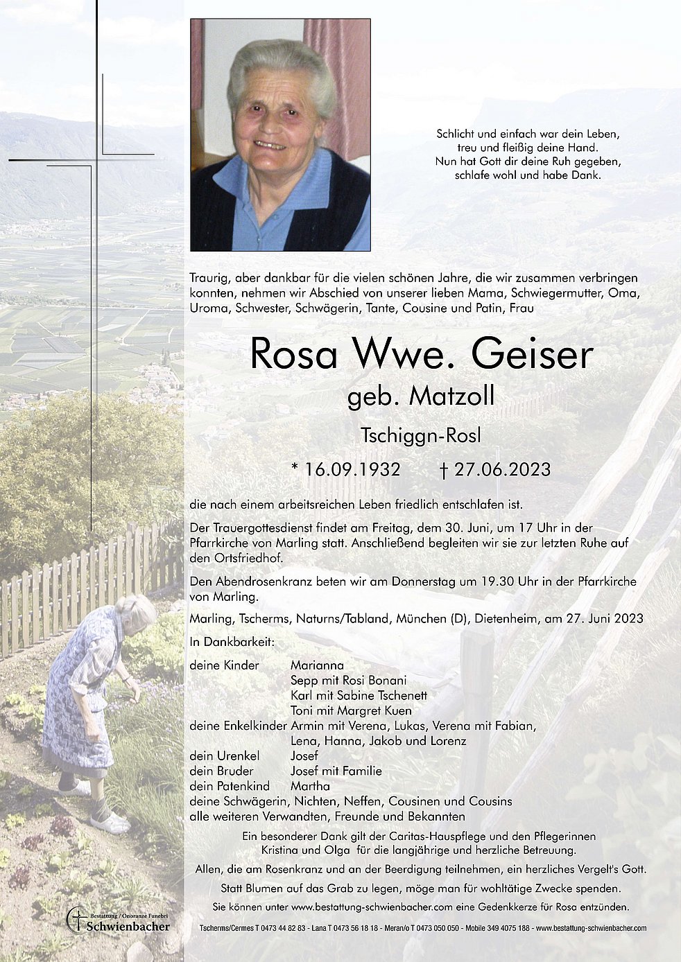 Begräbnisgottesdienst: 30.06. - 17:00 Uhr Marling