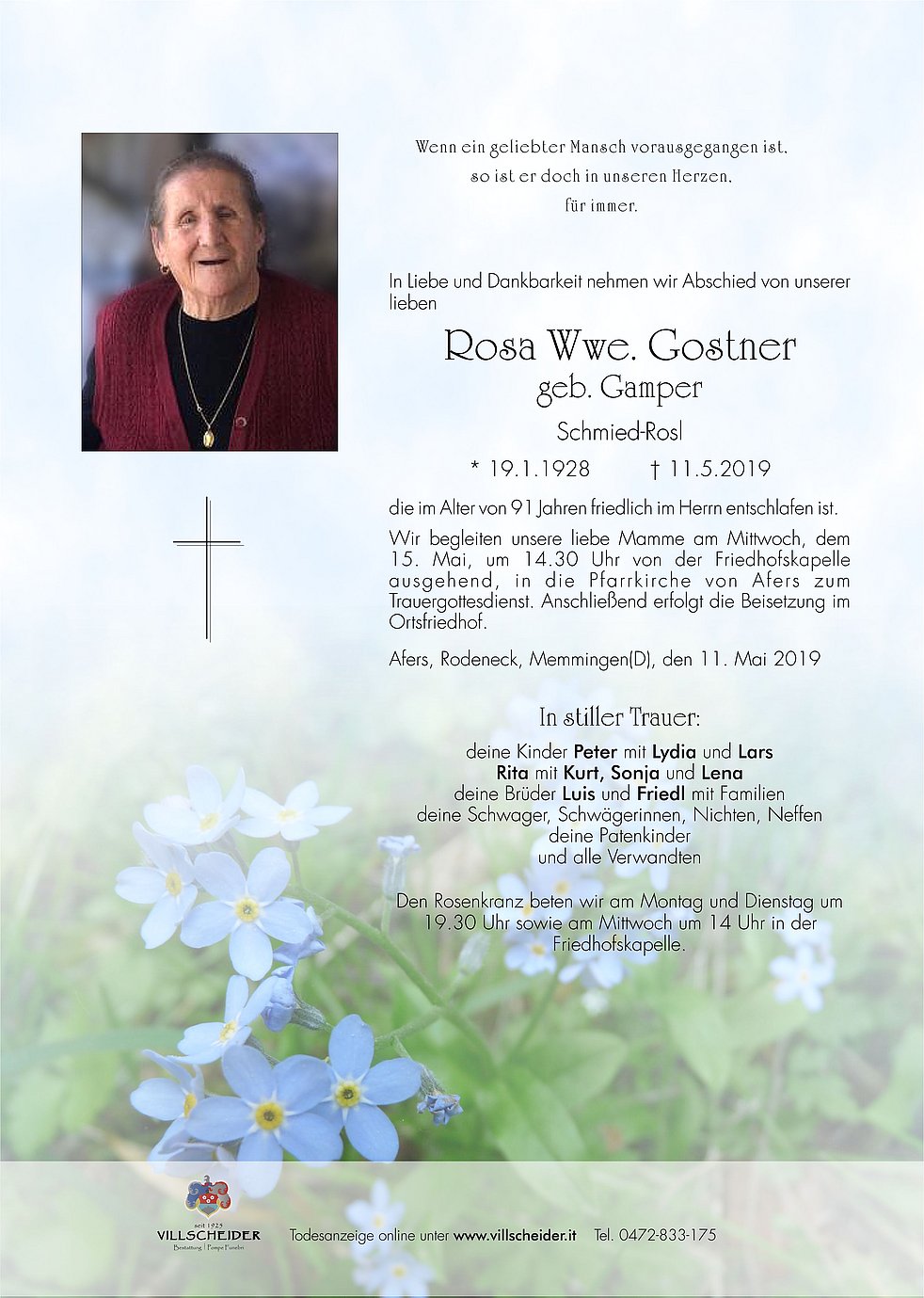 Begräbnisgottesdienst: 15.05. - 14:30 Uhr Afers