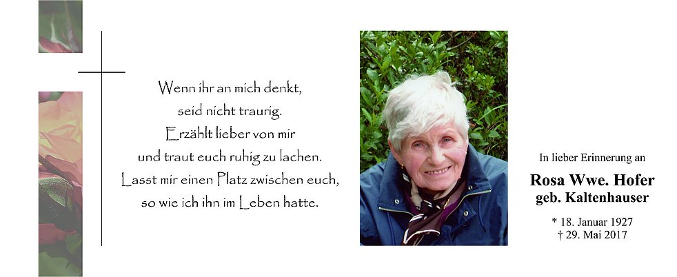 Wir begleiten unsere liebe Mama am Donnerstag, den 1. Juni,