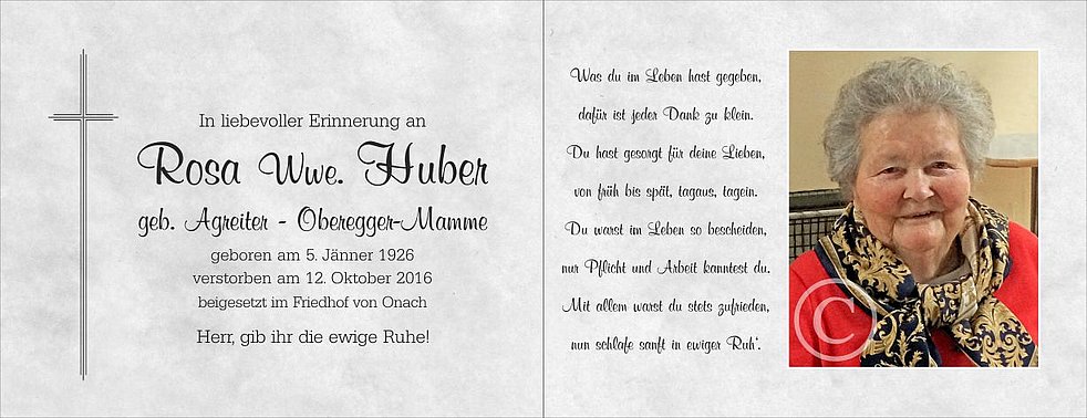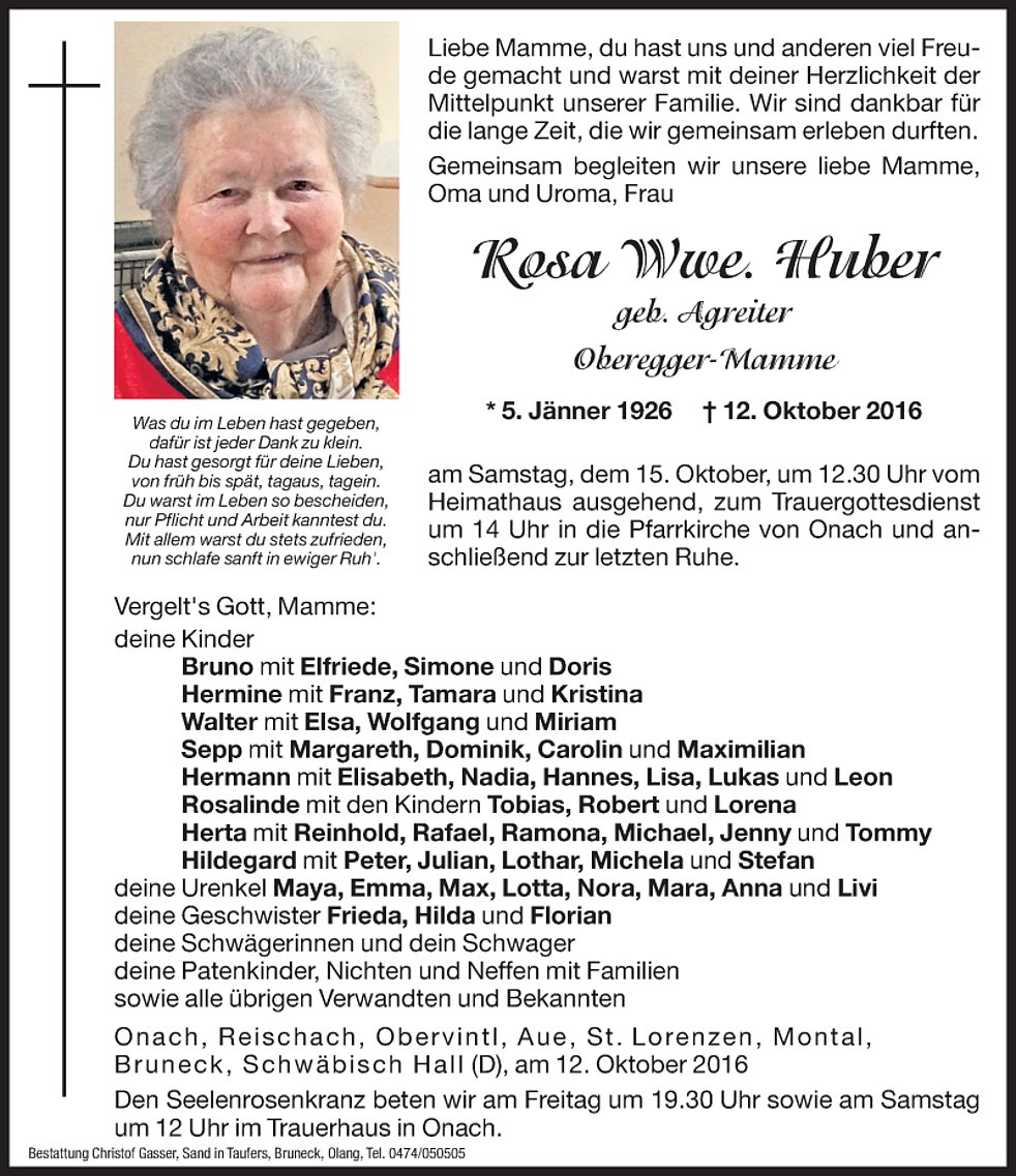 geb. Agreiter - Oberegger-Mamme