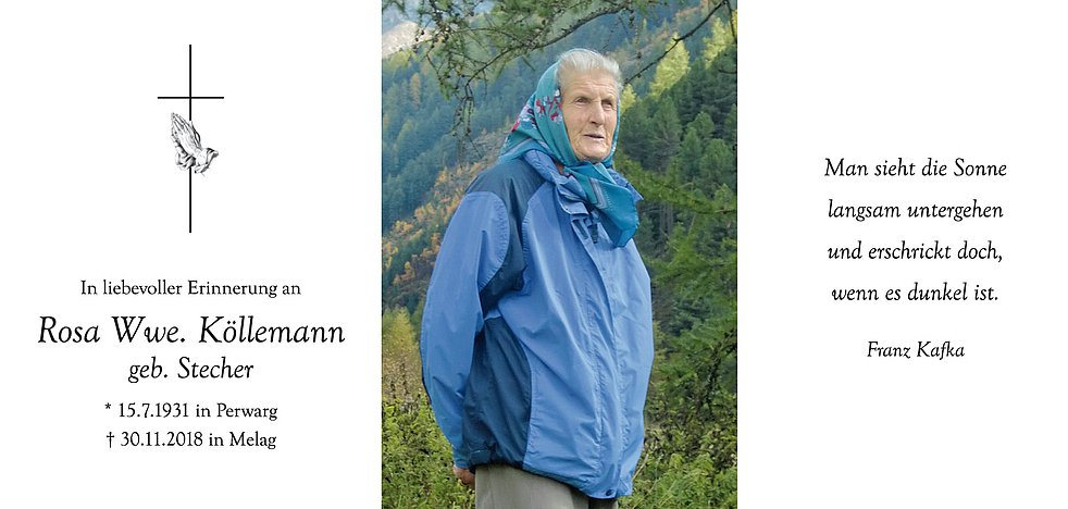 * 15.7.1931 in Perwarg † 30.11.2018 in Melag