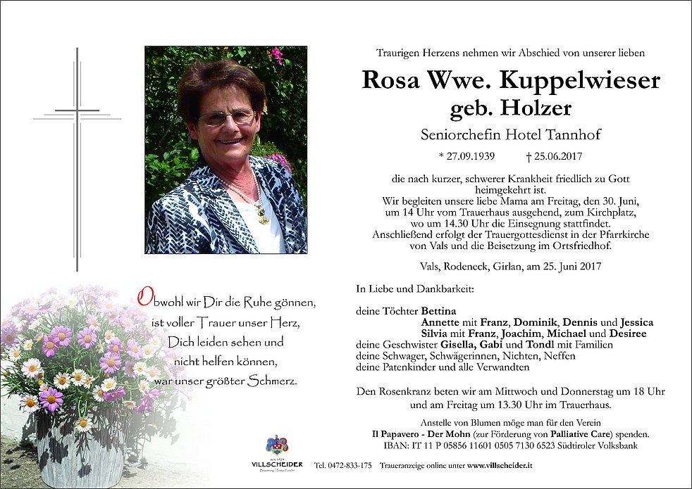Wir begleiten unsere liebe Mama am Freitag, den 30. Juni,