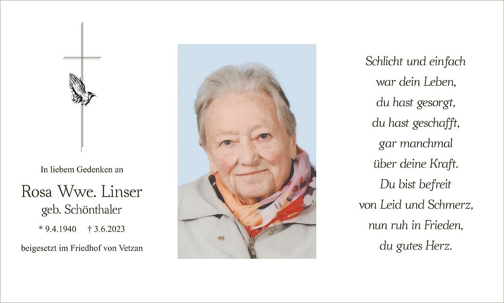 Einschlafen dürfen nach einem erfüllten, arbeitsreichen , fleißigen Leben ,das auch von Krankheit ,Schmerz und Leid geprägt war soll dir von Herzen gewährt sein .