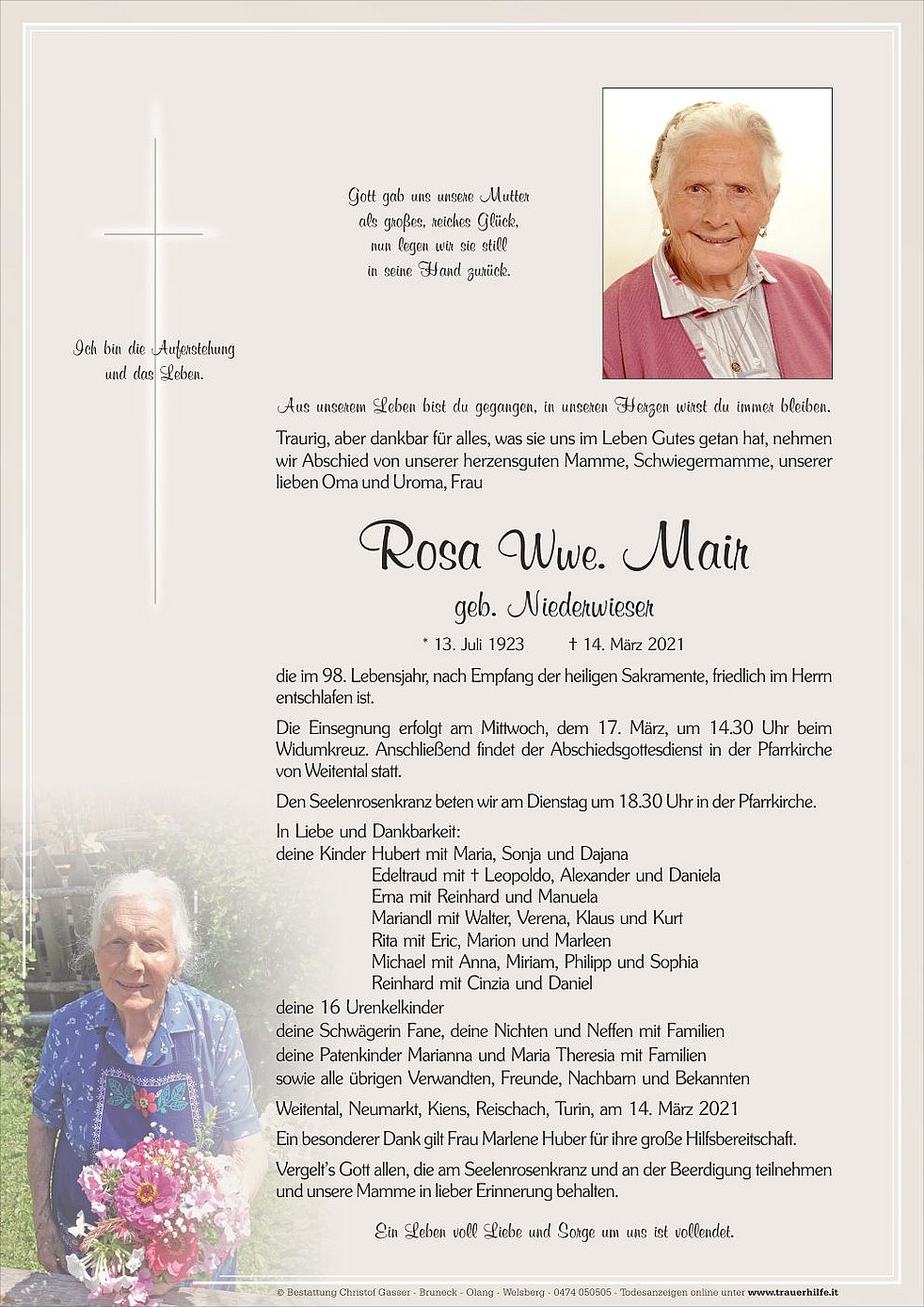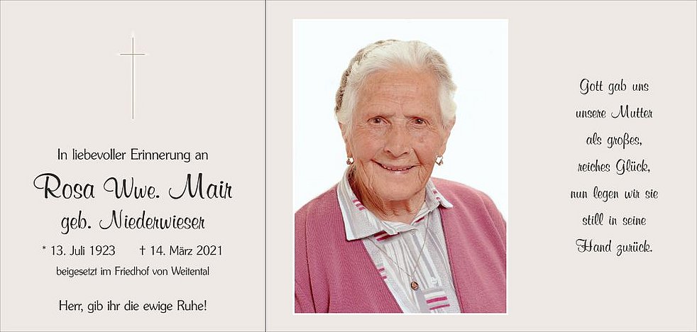 Vergelt’s Gott allen, die am Seelenrosenkranz und an der Beerdigung teilnehmen und unsere Mamme in lieber Erinnerung behalten.