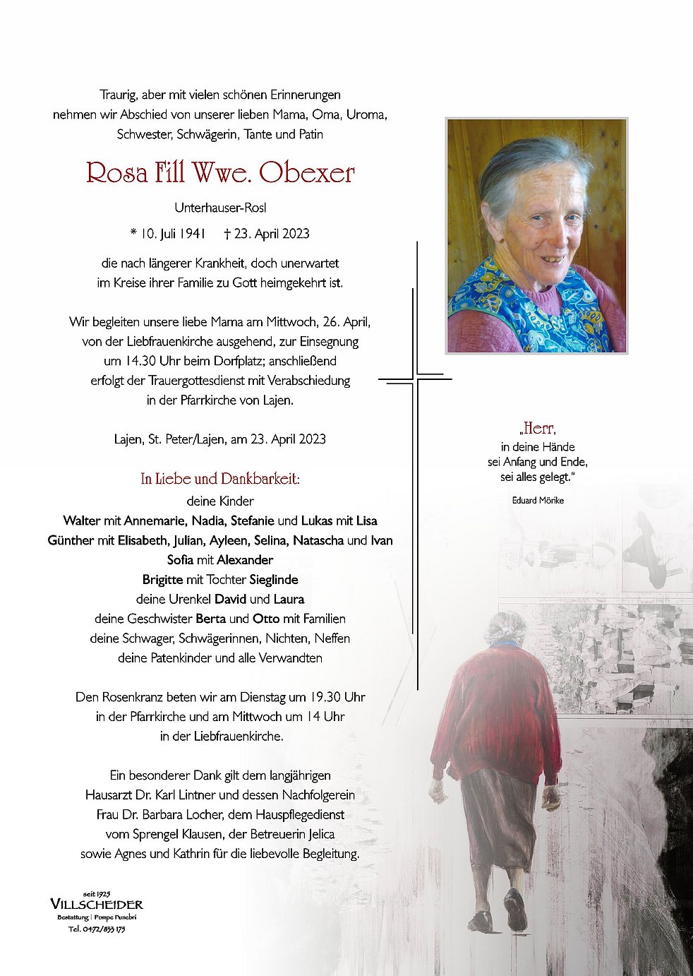 Trauerfeier: 26.04. - 14:30 Uhr Lajen