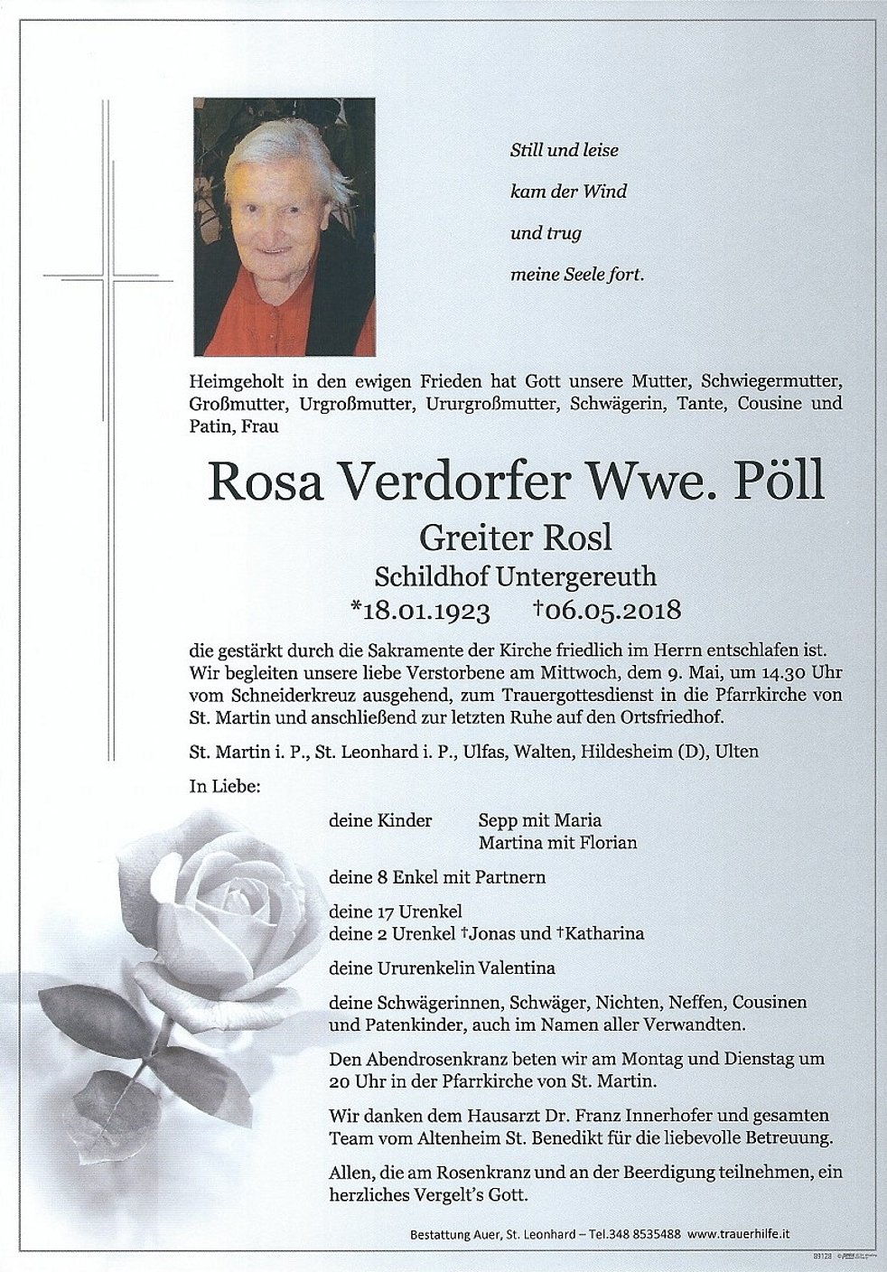 Wir begleiten unsere liebe Verstorbene am Mittwoch, dem 9. Mai, um 14.30 Uhr vom Schneiderkreuz ausgehend, zum Trauergottesdienst in die Pfarrkirche von St. Martin und anschließend zur letzten Ruhe auf den Ortsfriedhof.