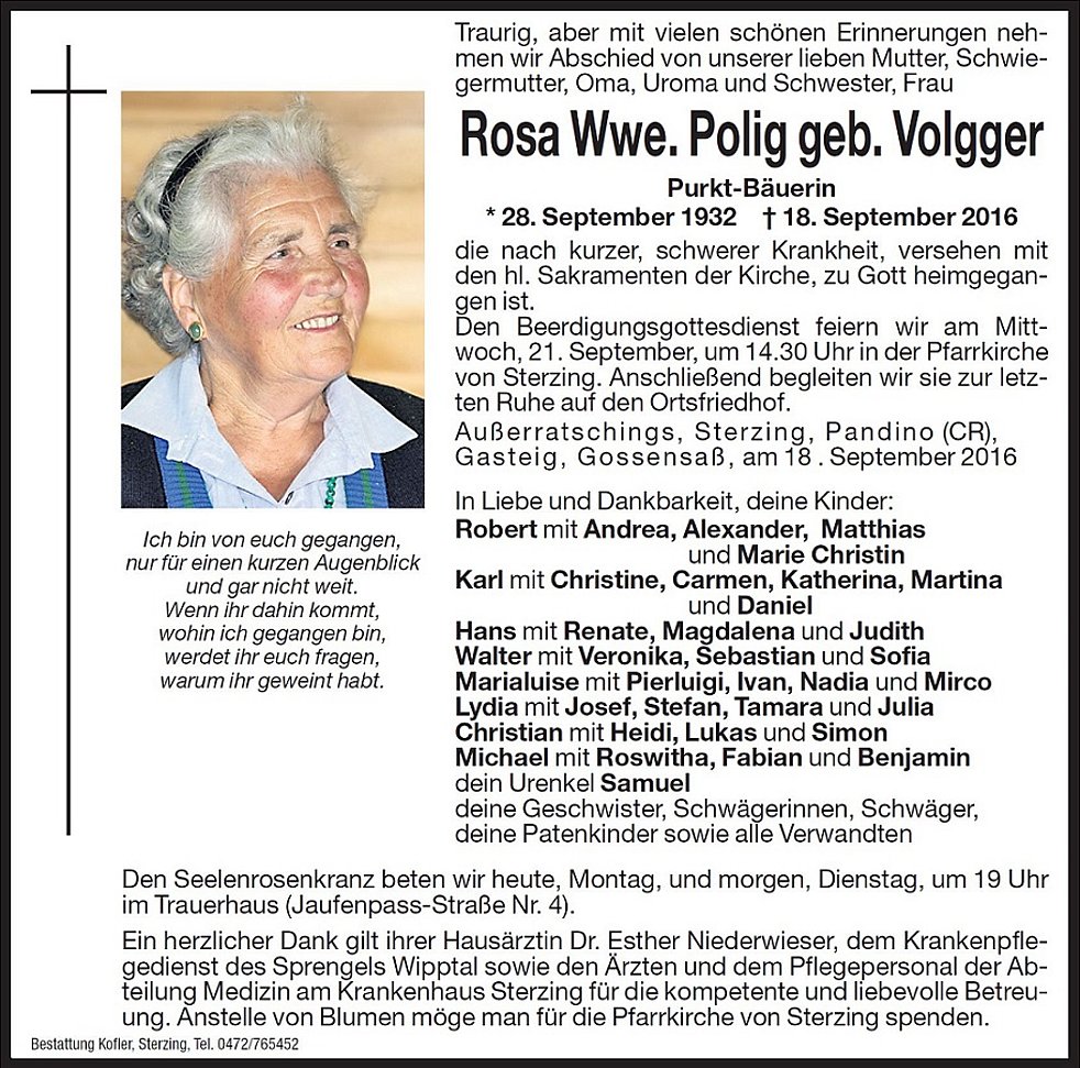 Rosa Wwe. Polig geb. Volgger