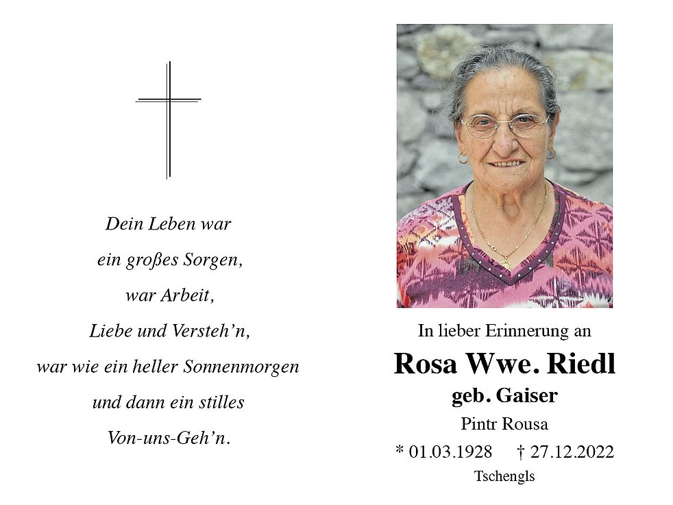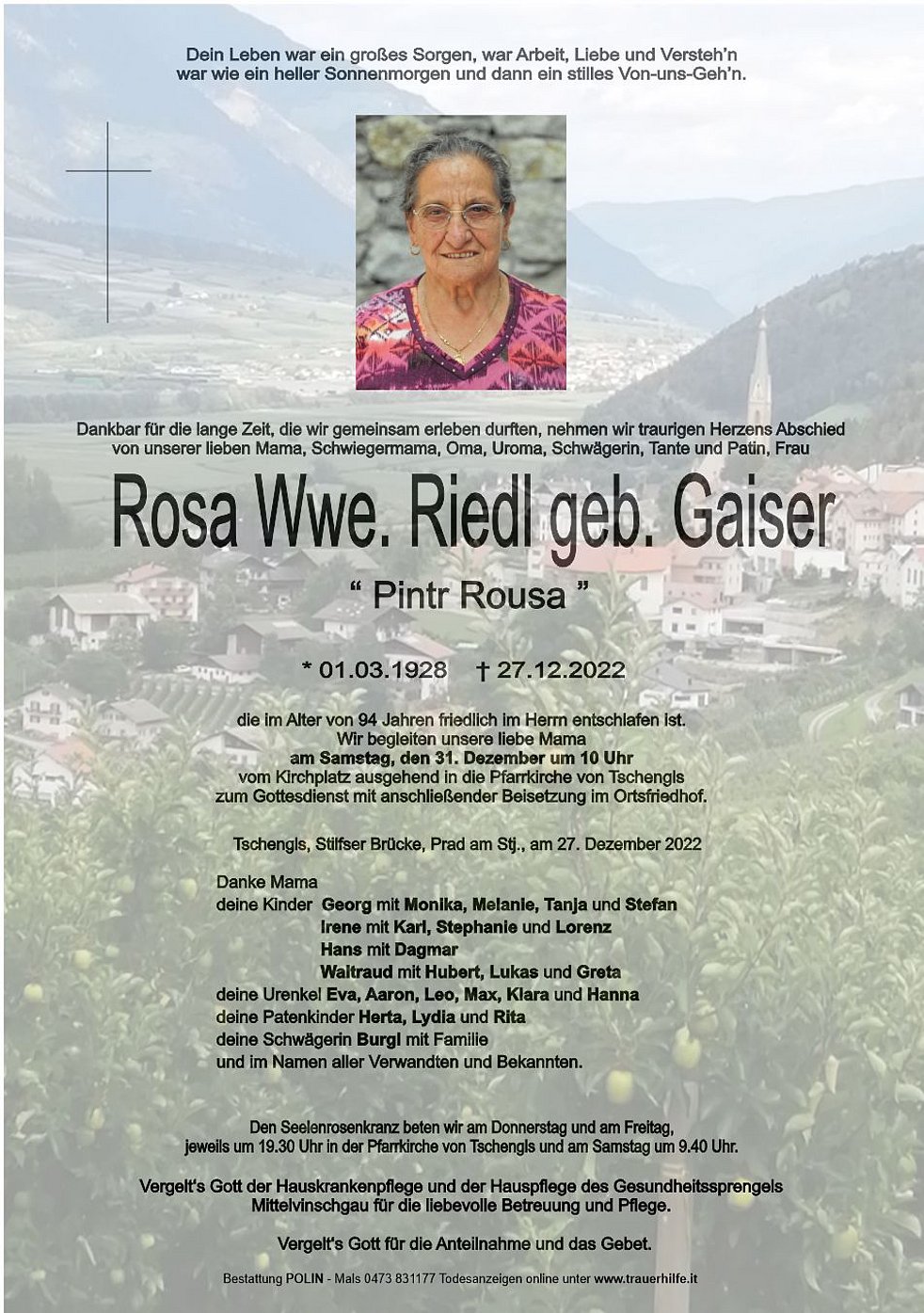Mittelvinschgau für die liebevolle Betreuung und Pflege.
