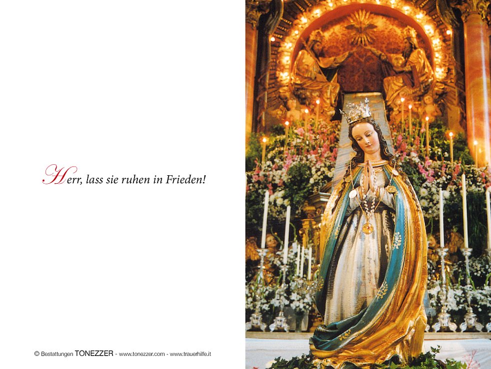 die im Alter von 88 Jahren, nach längerer Krankheit und versehen mit den hl. Sakramenten der Kirche friedlich entschlafen ist.