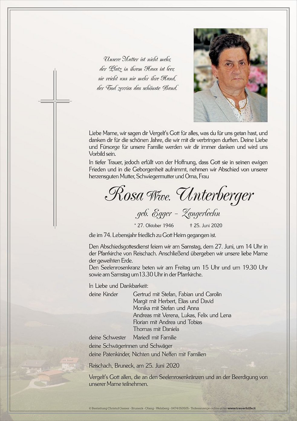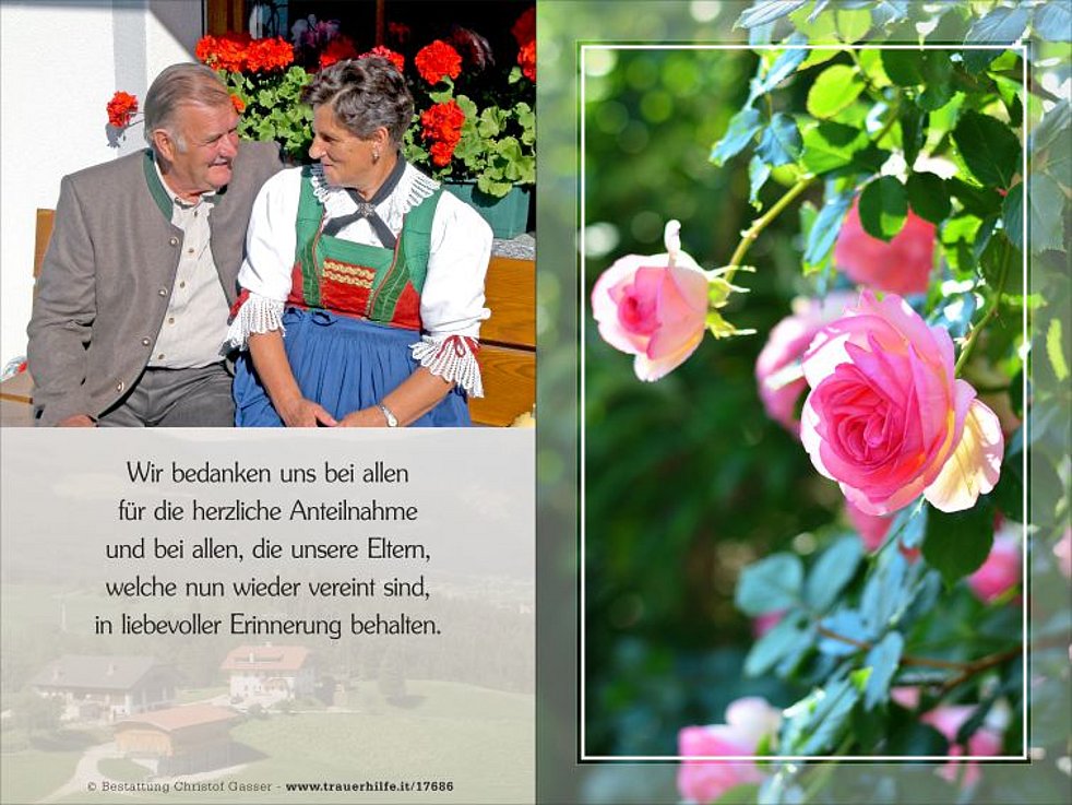 Liebe Mame, wir sagen dir Vergelt’s Gott für alles, was du für uns getan hast, und danken dir für die schönen Jahre, die wir mit dir verbringen durften. Deine Liebe und Fürsorge für unsere Familie werden wir dir immer danken und wird uns Vorbild sein.