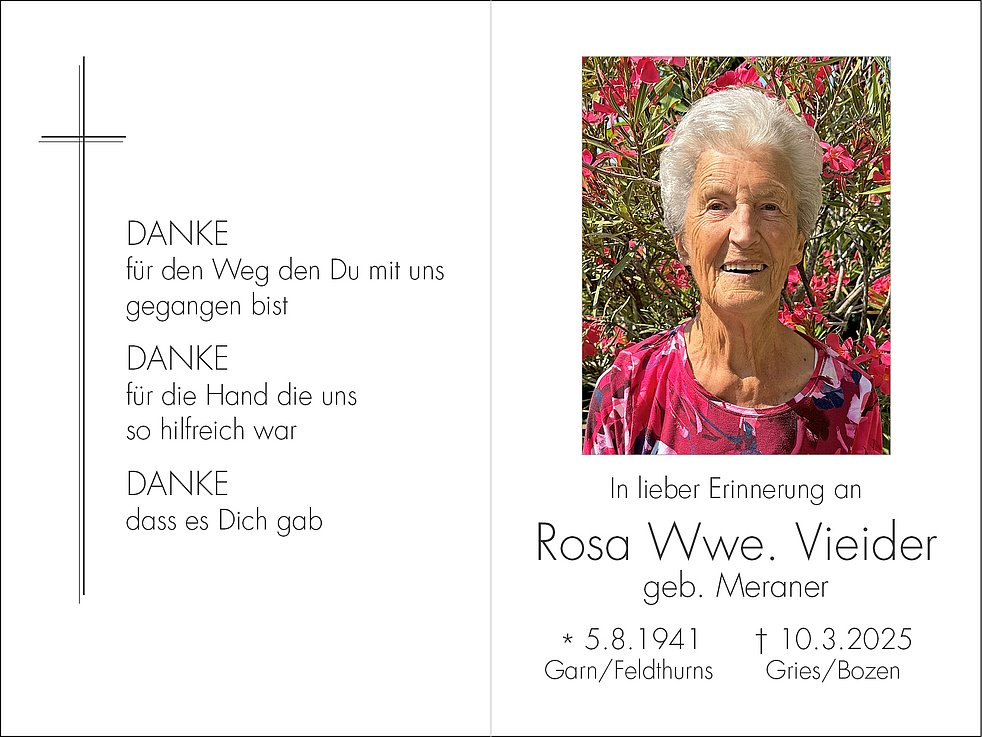 Dankbar, dass wir sie so lange haben durften, nehmen wir mit Liebe Abschied von unserer Mama, Schwiegermutter, Oma, Uroma, Schwester, Schwägerin, Tante und Patin, Frau