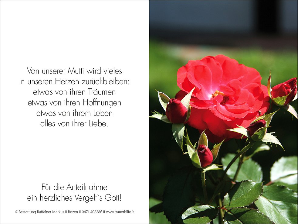 Allen, die am Rosenkranz und an der Trauerfeier teilnehmen, ein herzliches Vergelt`s Gott.