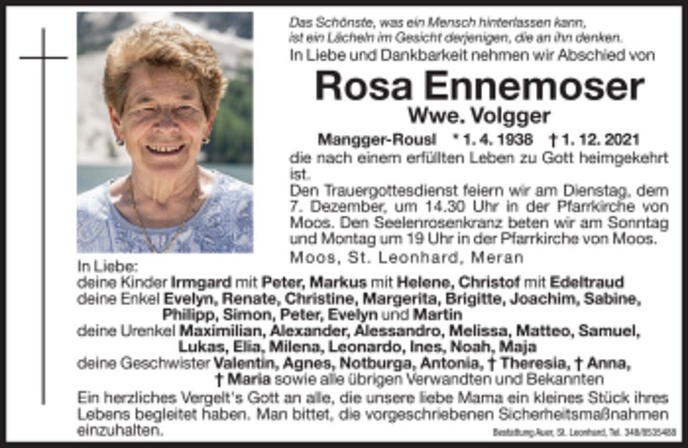 Zum Tode deiner lieben Schwester Rosa möchten wir dir und allen Angehörigen unser Mitgefühl ausdrücken.