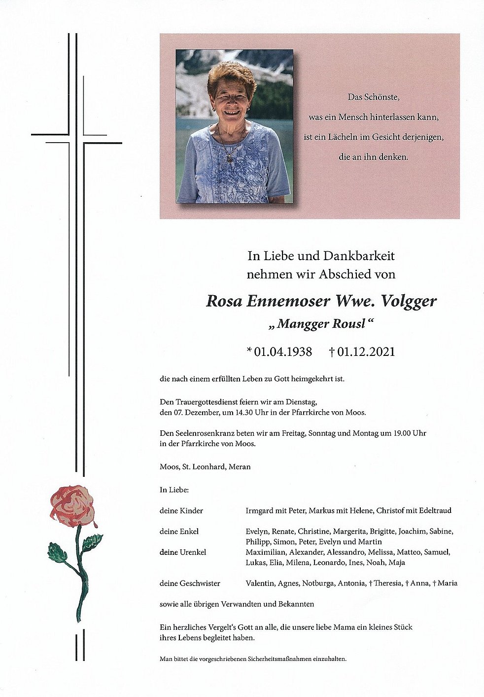 Liebe Burgl liebe Trauerfamilie