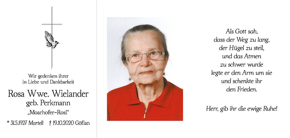 die im Alter von 93 Jahren, gestärkt durch die hl. Sakramente der Kirche friedlich im Herrn entschlafen ist.