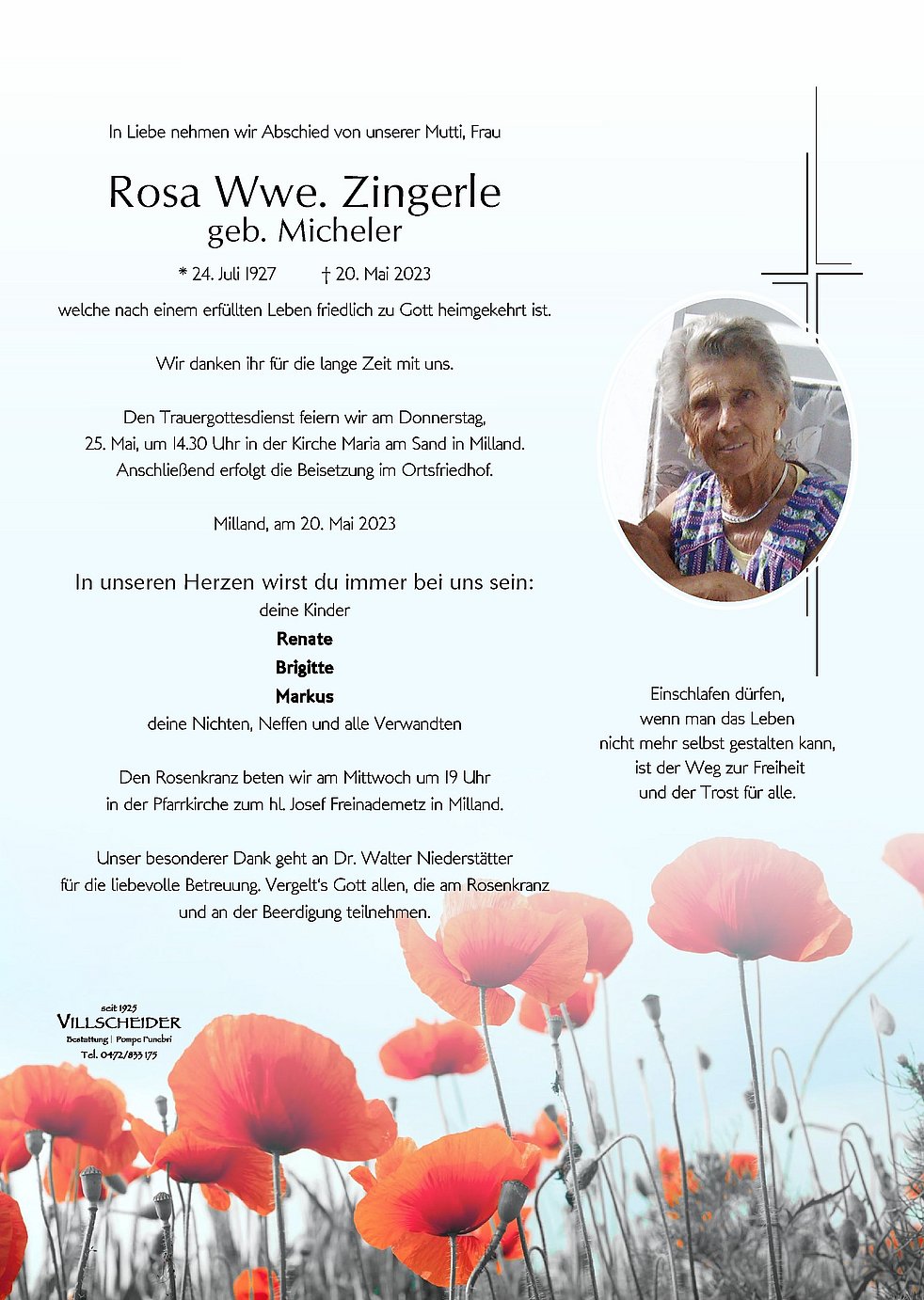 Begräbnisgottesdienst: 25.05. - 14:30 Uhr Milland Maria am Sand