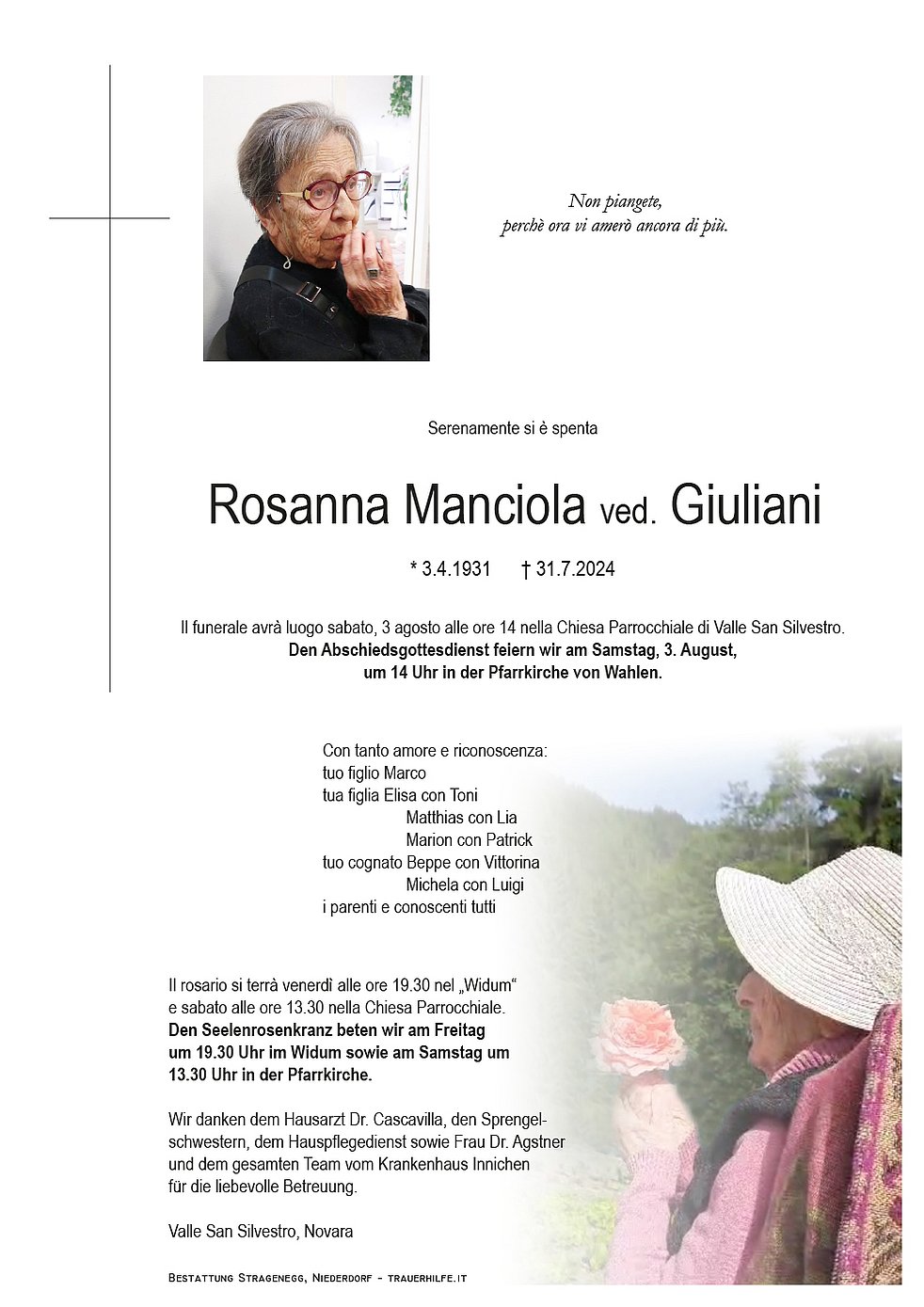 Trauerfeier: 03.08. - 14:00 Uhr Wahlen
