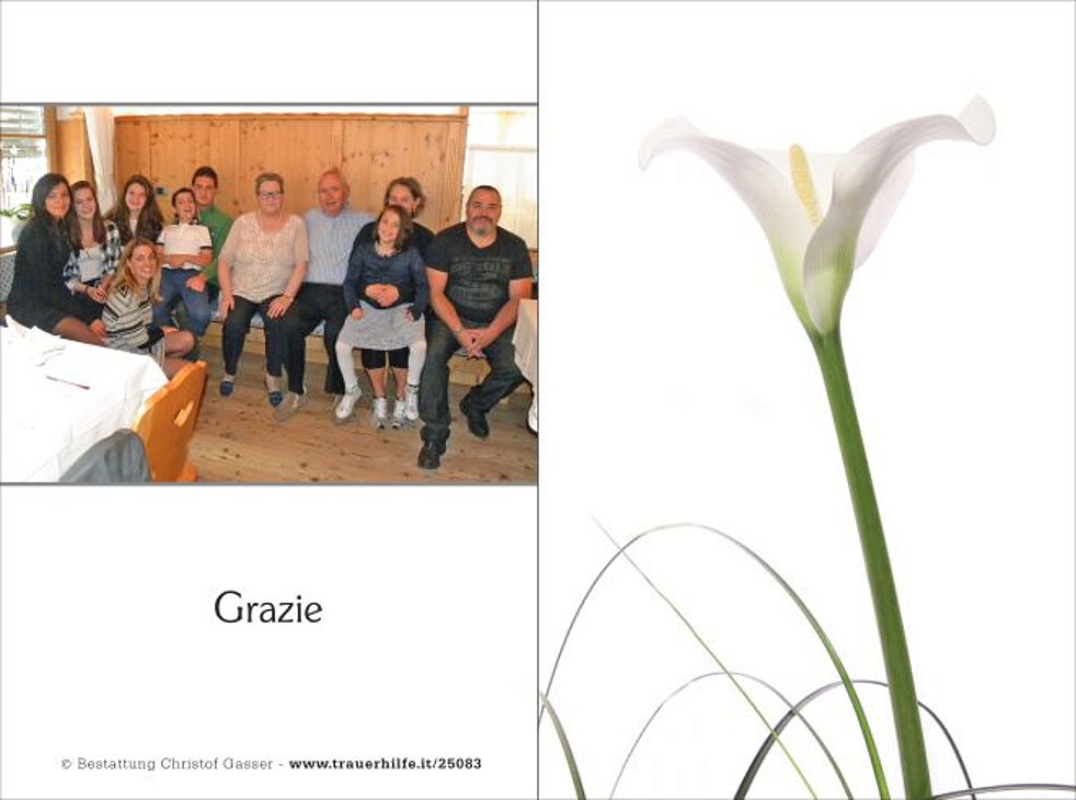 Un sentito ringraziamento al personale medico e infermieristico del reparto di Medicina dell’Ospedale di Brunico, al personale dell’assistenza domiciliare e alle infermiere del distretto sanitario.