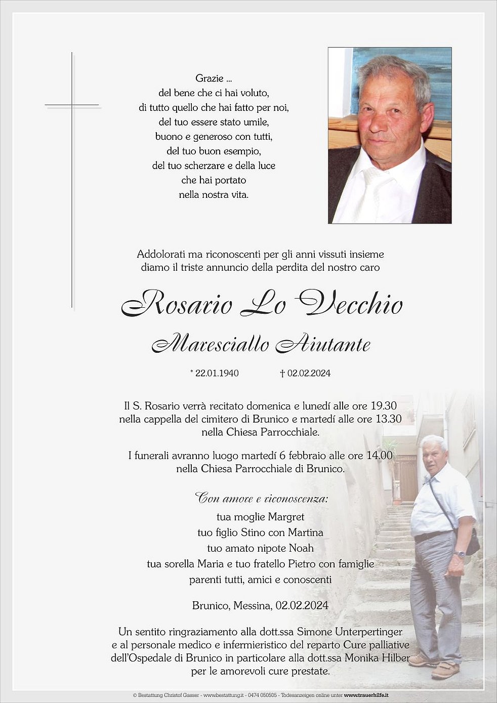 I funerali avranno luogo martedí 6 febbraio alle ore 14.00