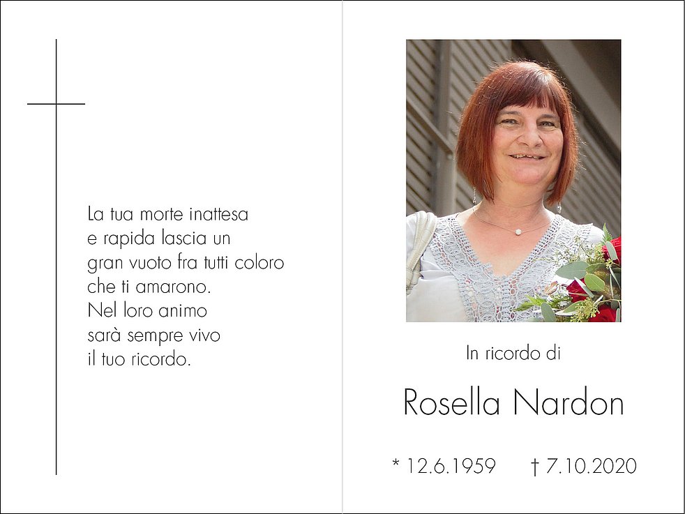 Ne danno il triste annuncio Alessandro con Maria, i figli Gabriele con Milena, Veronica con Bruno, i fratelli Sergio con Alberina, Nadia con Roberto, Loredana con Mauro, i nipoti e parenti tutti.