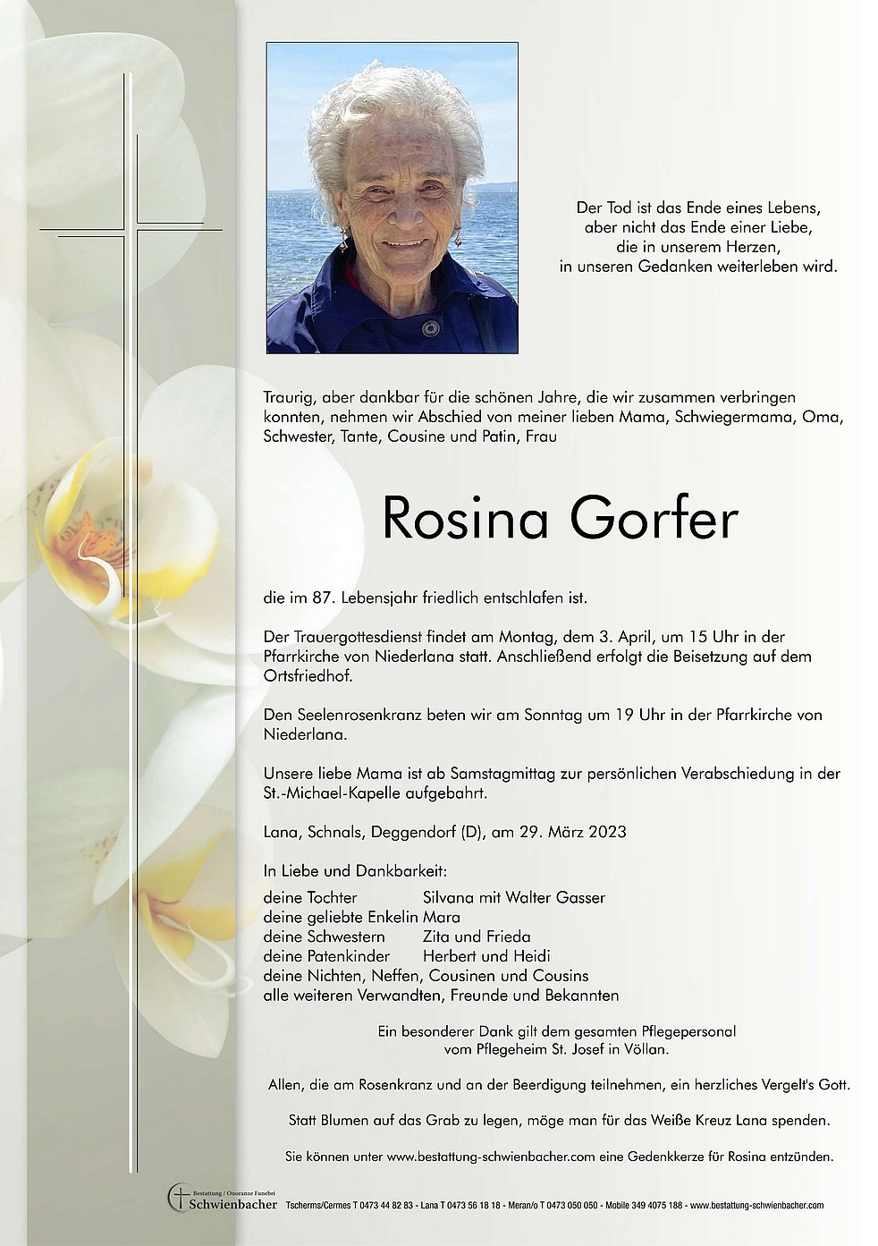 Pfiati Rosina...iats seids wieder banond...du und meine mami...In insern Herzl werd es olm weiterleben...Viel Kroft Silvana...Walter und Mara in der traurigen Zeit..